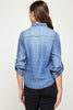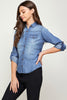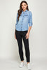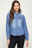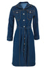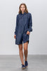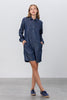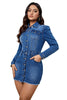 Fashion denim dress, long sleeves, Spread collar, Chest button-flap patch pockets, coin pocket front scoop pockets, back patch pockets