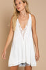 Introducing our Sleeveless Deep V-Neck Dress with Lace on Front, a sophisticated and elegant addition to your wardrobe. This dress is designed with a sleeveless silhouette that's perfect for warm weather or special occasions. The deep V-neckline adds a touch of allure and sophistication, making it a great choice for evenings out or formal events. The dress features delicate lace detailing on the front, adding a romantic and feminine touch to the design. With adjustable straps, you can customize the fit to your liking, ensuring comfort and confidence. The outseam and raw edge detailing add a contemporary and trendy element to the dress, making it a stylish choice for any fashion-forward individual.