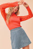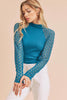 Layer your outfit in our Suri Top, featuring a high-neck, long sleeve silhouette with lace sleeve detailing for added flare.