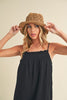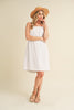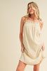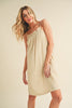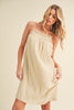 Veda dress exudes charm with a square neck and adjustable straps for a personalized fit. The flowy silhouette in cotton gauze provides comfort, while the embroidered trim on the neck adds a touch of bohemian elegance. Effortlessly stylish with pockets and lined for a breezy and relaxed look.